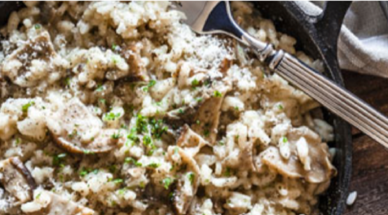 Breng een ruime pan water aan de kook. Voeg als het water kookt de soja rijst en eventueel zout toe. Kook in circa 10 minuten beetgaar en giet af. Bak de ui glazig in de olie in een koekenpan en voeg de champignons toe. Bak nog circa 6-7 minuten. Voeg de rijst, en de bouillon toe en roer door totdat de bouillon is opgenomen. Meng als laatst de roomkaas en de truffeltapenade erdoor en breng op smaak met peper en zout. Garneer met de peterselie.